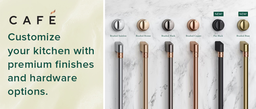 When you've put your own unique style into every detail of your kitchen, you don't want your appliances to look like everyone else's. You want to make a statement. The Café Customizable Professional Collection appliances are definitely distinct. Add your choice of either brushed copper, brushed bronze, brushed black or brushed stainless hardware and your kitchen becomes unforgettable.